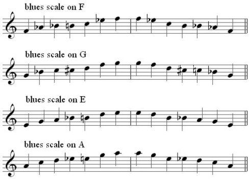 The Blues Scale is a seven note scale that is primarily used in jazz, blues and rock. This scale has notes that are called "blue" notes. They are played (or sung) lower, or flat. These notes ore the 3rd and the 7th.