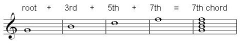 A seventh chord (or 7th), is a four note chord containing a root, 3rd, 5th and 7th.