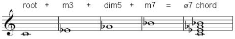 There are several types of 7th chords - 7th, minor 7th (m7), major 7th (maj7), diminished 7th (dim7) and half diminished 7th (ø7)